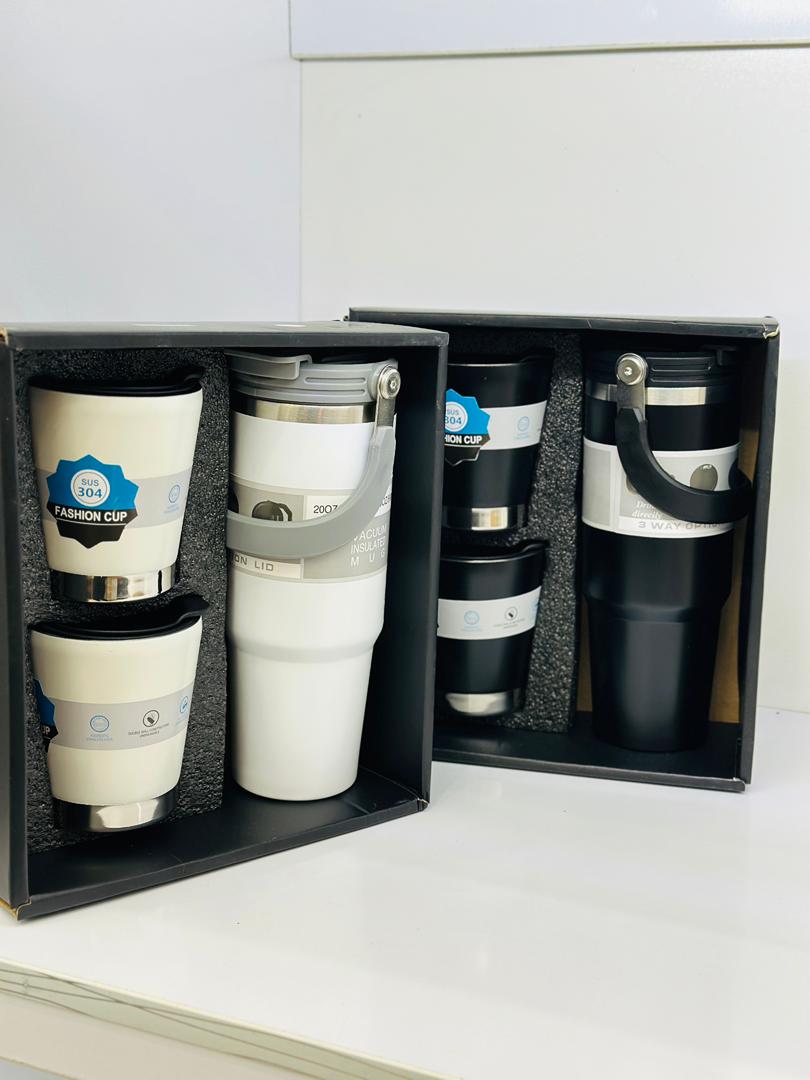 ست ماگ و فنجان استیل دوجداره ✔️ یک ماگ استیل بزرگ جنس بدنه: استیل ضدزنگ SUS 304 دوجداره و کاملاً عایق مناسب برای نگهداری نوشیدنی‌های سرد و گرم درب قفل‌دار و ضدنشت ظرفیت بالا (طبق ظاهر حدود 800–900 میلی‌لیتر) ✔️ دو عدد فنجان استیل دوجداره ساخته شده از استیل 304 سبک، مقاوم و مناسب برای قهوه، چای و نوشیدنی‌های گرم دوام بالا و فاقد BPA ⭐ ویژگی‌های کلی: کیفیت خوب و مناسب برای استفاده روزمره، سفر، کمپینگ و خودرو دوجداره و عایق حرارتی ظاهر شیک و بسته‌بندی مناسب برای هدیه