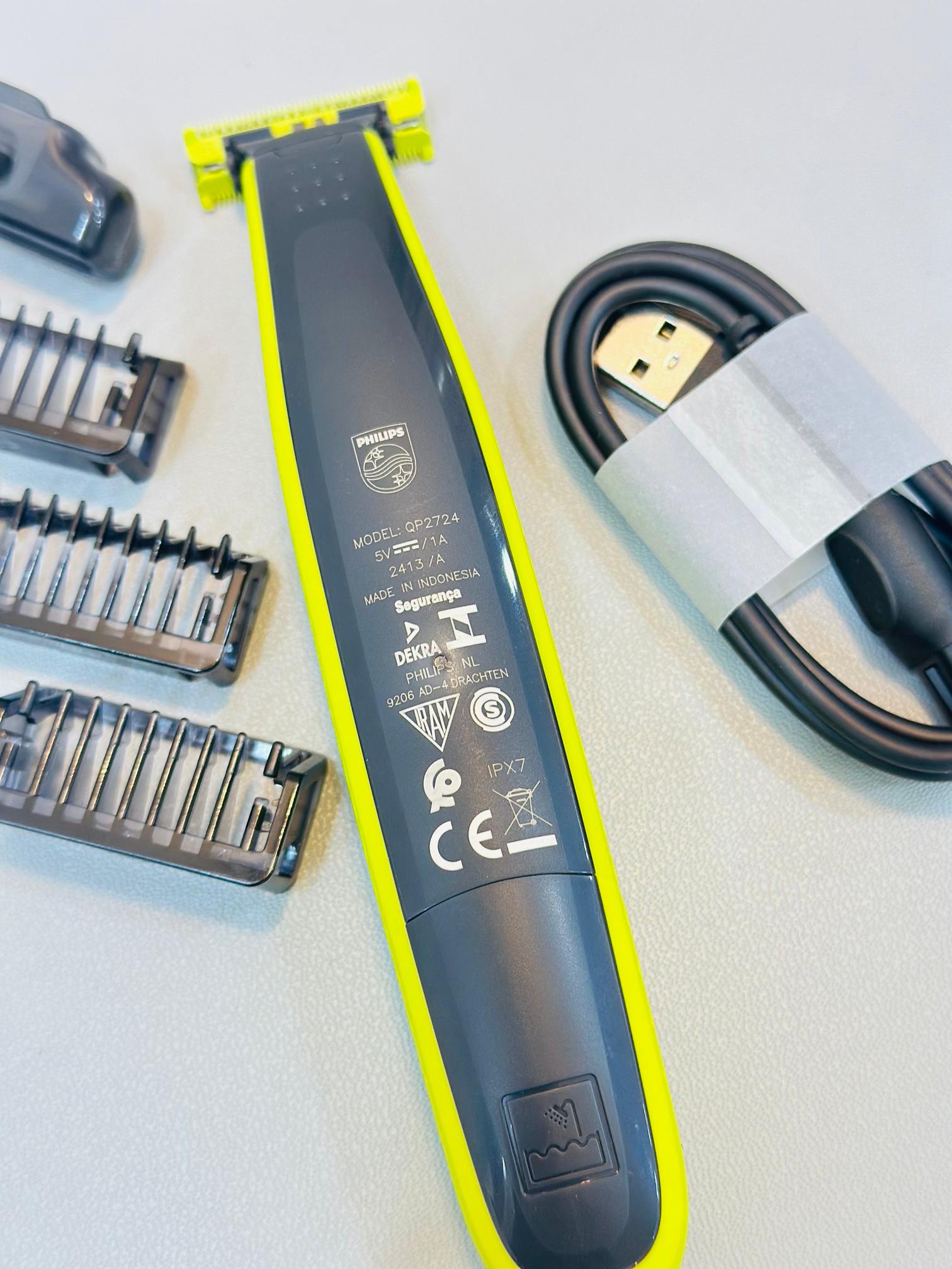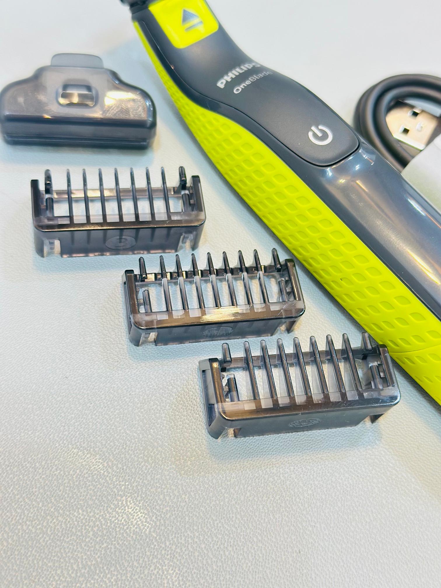 وان بلید فیلیپس ( ژیلت شارژی ) ساخت اندونزی اصلی کاملا ضد اب و قابل استفاده زیر دوش با ضمانت دارای گواهی IPX7 دارای 3 عدد شانه جهت سایز کوتاهی مو کاملا سیف بدون دندان گیری مخصوص مناطق خاص با هر بار شارژ تا 45 دقیقه مداوم میتونید کار بکنید